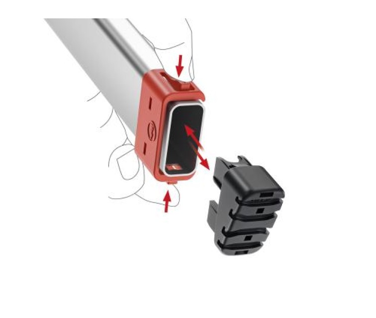 Теперь эта проблема решена. Вставка для лестницы HAILO EasyClix имеет инновационную систему смены ножек, которая превращает каждую лестницу HAILO (начиная с моделей 2015 года) в универсальную лестницу, подходящую для любого напольного покрытия.